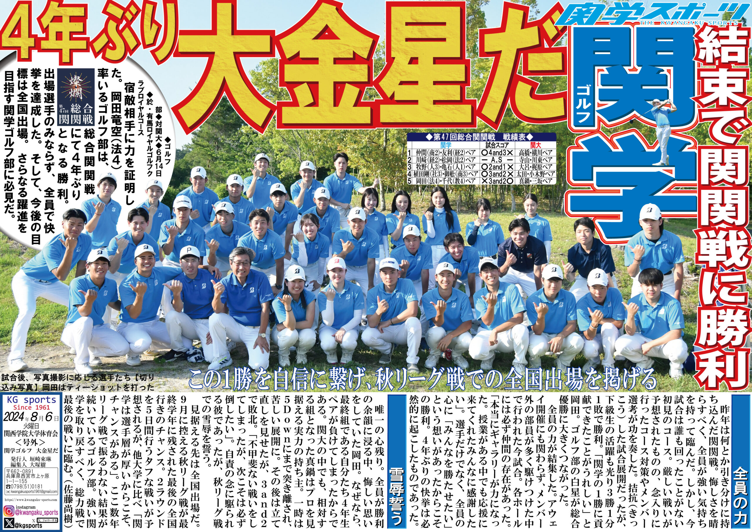 関西学院大学体育会学生本部編集部 関学スポーツは試合速報、号外、企画などで体育会42部の活躍を伝えます